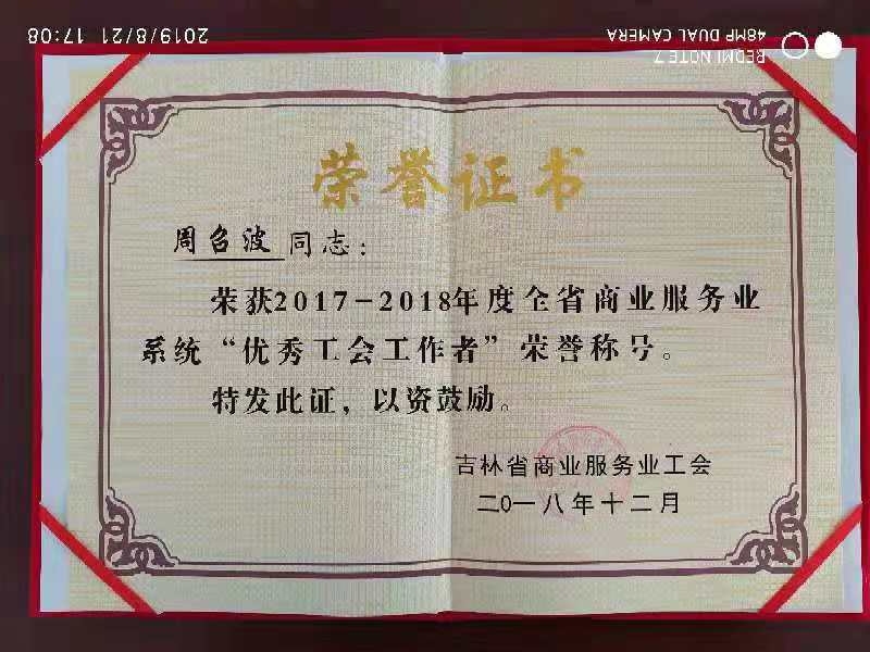 資質(zhì)榮譽(yù) 首頁(yè)> 資質(zhì)榮譽(yù) 優(yōu)秀工會(huì)工作者 2019-09-16 13:08:33 點(diǎn)擊次數(shù):192? 上一篇:榮譽(yù)證書(shū) 下一篇:沒(méi)有了